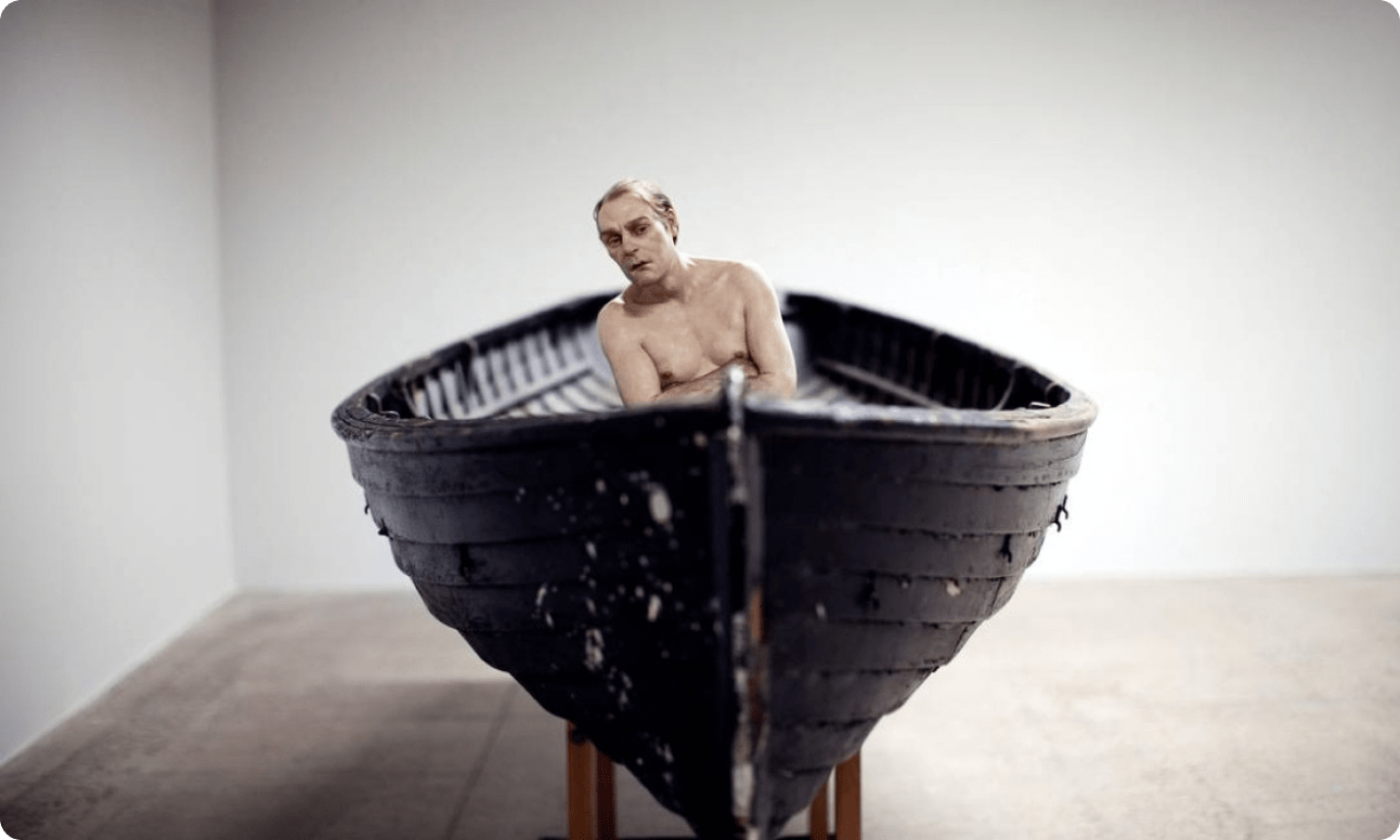 Наряду с десятками фантастических работ Unknown Unknows посетителям предлагается и что-то более осязаемое. Возвращением в «материальный мир» можно назвать выставку Mondo Reale, сделанную совместно с Фондом Cartier. Великолепный набор художников, ритмичная дистанция между ними и актуальность. Здесь и Патти Смит с Дэвидом Линчем, и гиперреалистичная скульптура Рона Мьюека «Мужчина в лодке», и вереница первых полос «The New York Times», ставших холстом для художника Се Сибуя.
